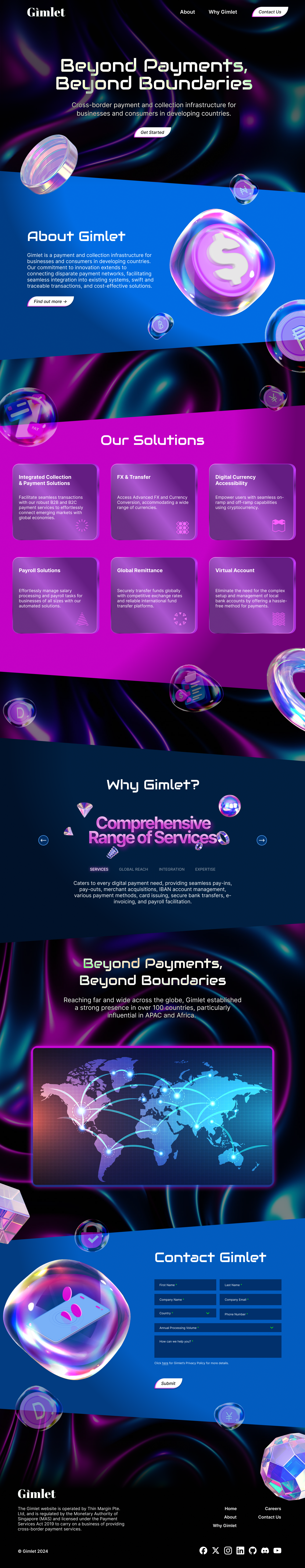 Rebranding for a Web3 client, 8Hexa Financials, to Gimlet. Done with a team of 3 other designers, we managed a full rebrand with the brand identity itself and a new website.